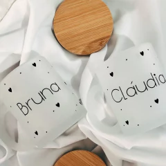 Canecas Vidro Jateado Fosco 325ml + Tampa Bambú
